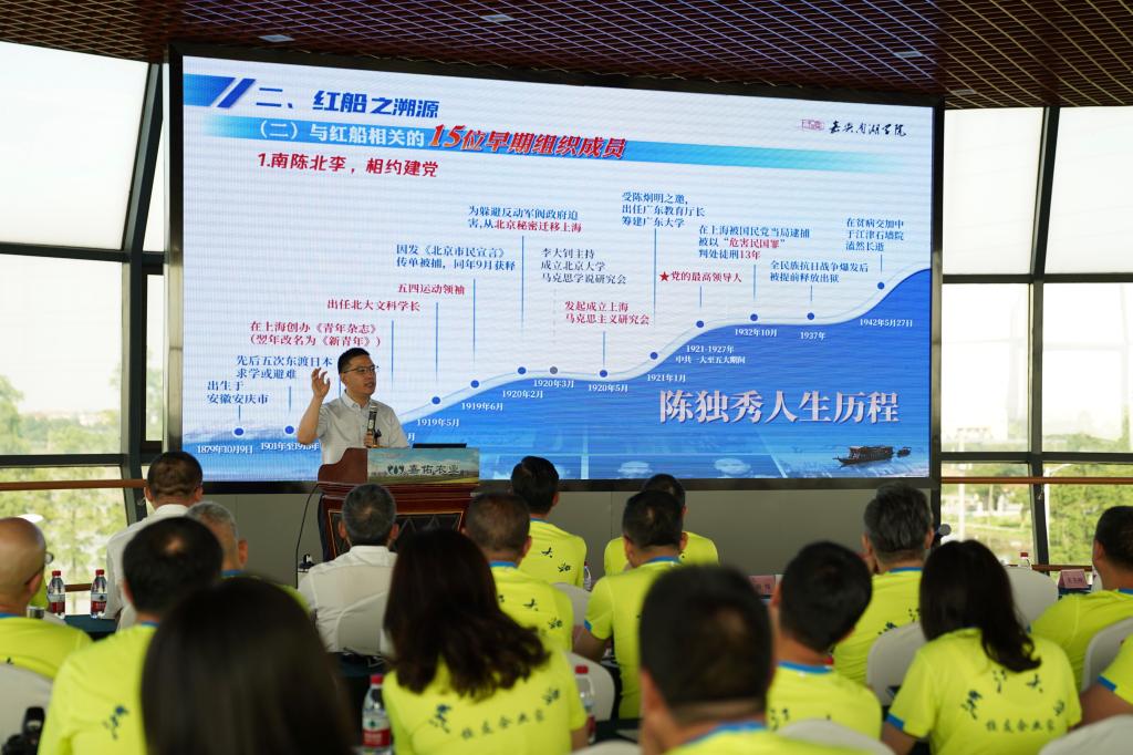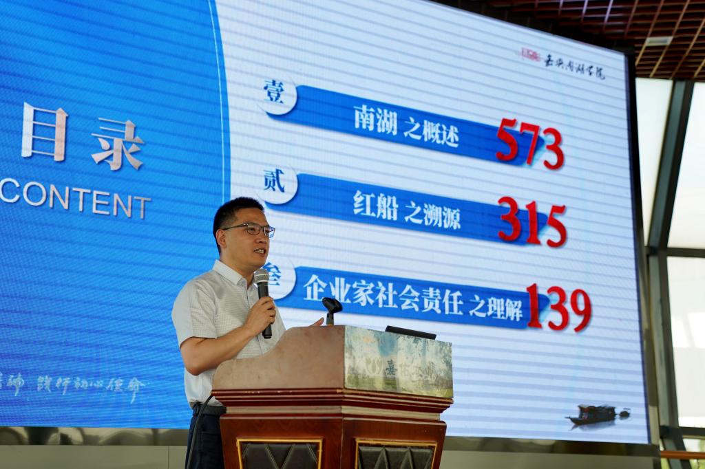 贾文胜在报告中结合自己的研究成果,运用丰富的案例、详实的史料和严谨的论说,分析指出红船精神始终闪烁着“前进中首创、遇挫中奋斗、过程中奉献”的革命主义光芒,为新时代企业家创新创造创业将提供源源不断的精神动力。他希望,企业家要大力弘扬红船精神,不断强化社会责任。一是弘扬首创精神,强化企业创造。企业家创新活动是推动企业创新发展的关键,要通过构建创新技术、创新流程、创新产品三条路径,最终实现创造财富。二是弘扬奋斗精神,打造企业品牌。要强化标准重质量,追问好“企业产品的高附加值从哪里来”;要强化责任重环保,追问好“国家社会责任同我们有关系吗”;要强化内涵重品牌,追问好“企业的好口碑如何界定”。三是弘扬奉献精神,树立企业形象。要讲“道义”守“诚信”,在“天道酬勤”、“人道酬善”、“家道酬和”的基础上中演绎出“商道酬诚”;要重“大我”求“无我”,重点做好“愿景构建、愿景趋同、外部资源整合、内部结构治理、企业文化塑造”五件事;要舍“小家”为“大家”,换一种思维体悟“付出就是另一种得到,奉献就是另一种索取”的深刻道理。