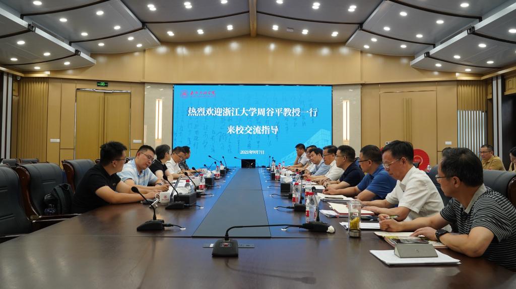 9月7日下午,浙江大学原党委副书记、浙江大学区域协调发展研究中心首席专家、中国西部发展研究院院长周谷平,中国西部发展研究院常务副院长董雪兵,浙江省新型高校智库职业教育现代化研究中心执行主任刘晓等一行五人来校调研交流。校领导盛付祥、贾文胜、郭坚刚、胡文蔚、袁志明、蒋文波、朱蓉、李泉明、陈加明及相关部门负责人参加了调研座谈会。