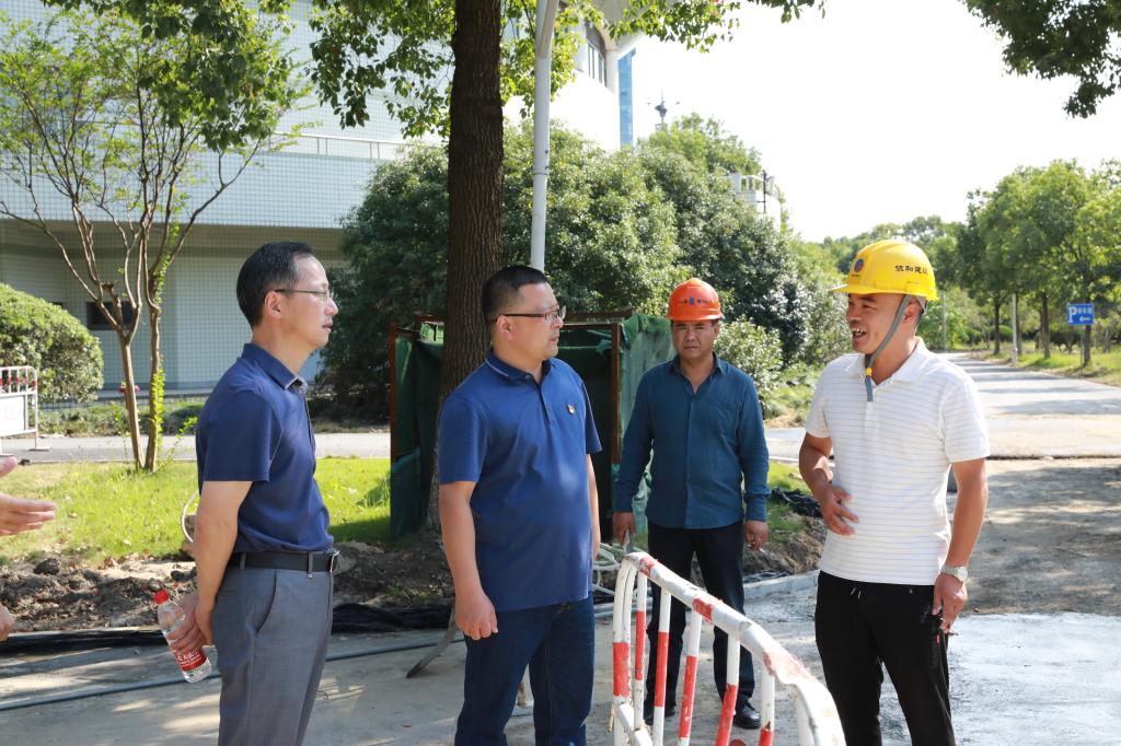 胡文蔚、李泉明一行先后来到校园出入口、食堂、后勤服务中心、校园保卫处及在建工地等区域,仔细询问并检查安全工作开展情况。