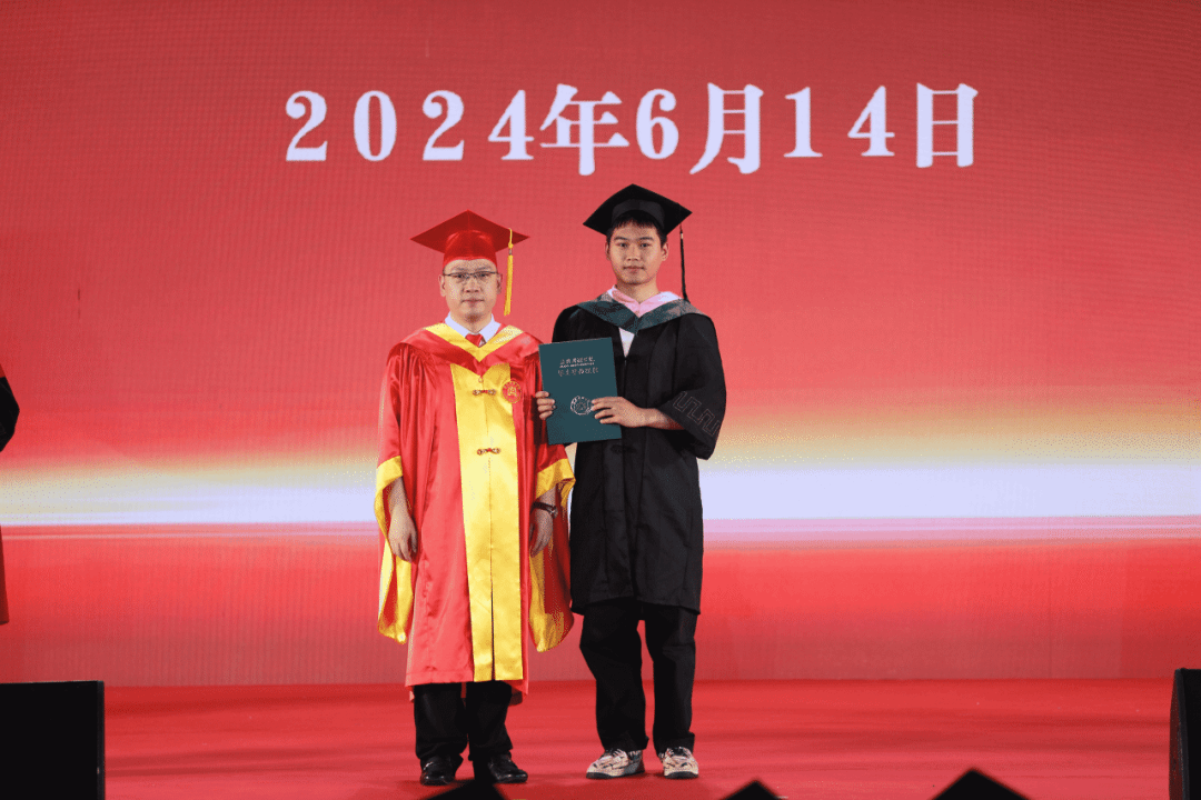 校长、党委副书记贾文胜代表学校接受2024届毕业生代表捐赠的纪念品,并寄语全体毕业生带着南湖的梦想,迎风飞扬,让生命怒放,让成功启航。