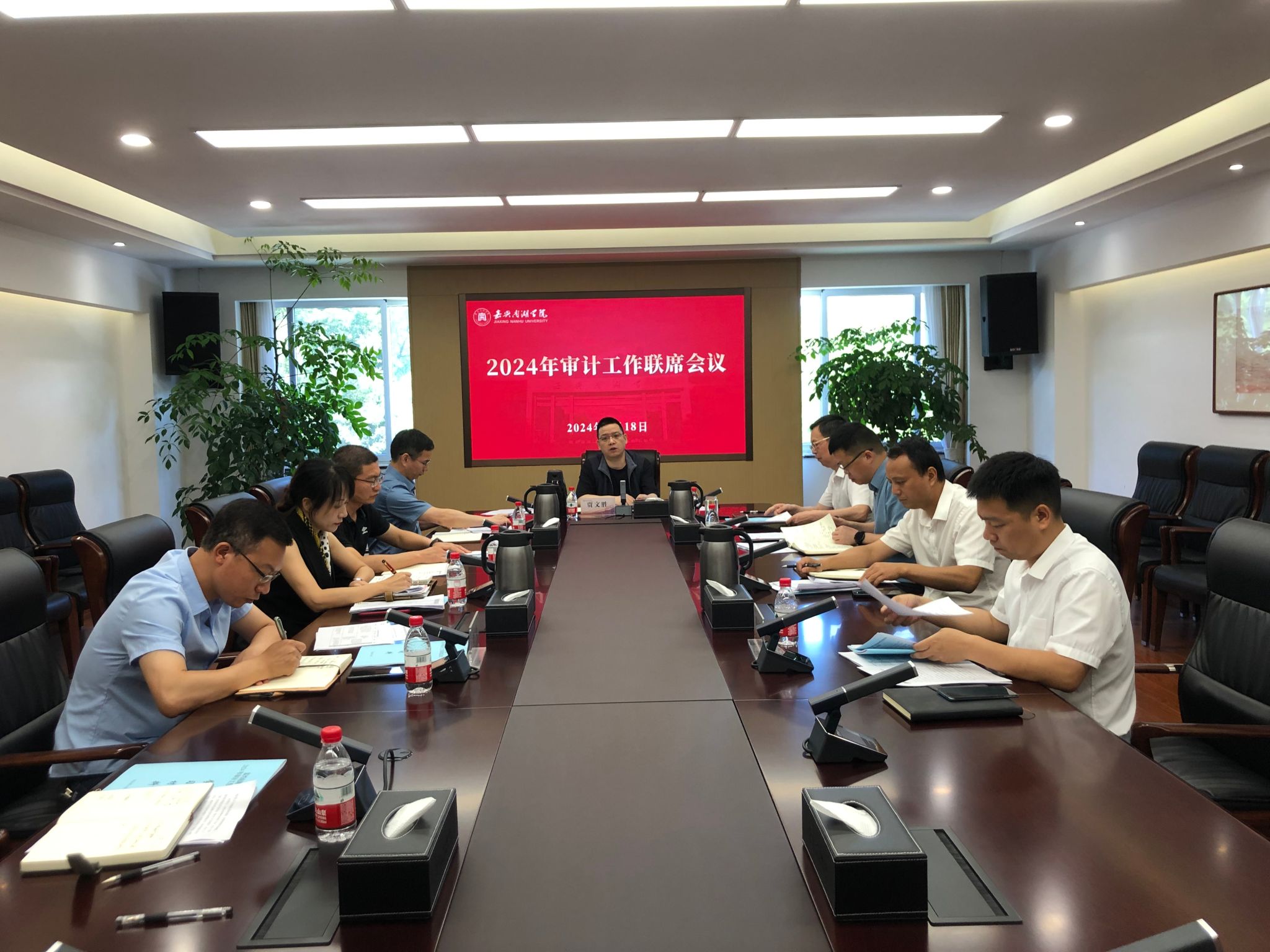 6月18日,学校召开2024年审计工作联席会议,校长、党委副书记贾文胜,党委委员、组织部(统战部)部长、人才办主任庄应强出席会议。会议由副校长、党委委员蒋文波主持会议,联席会议各成员单位负责人参加会议。