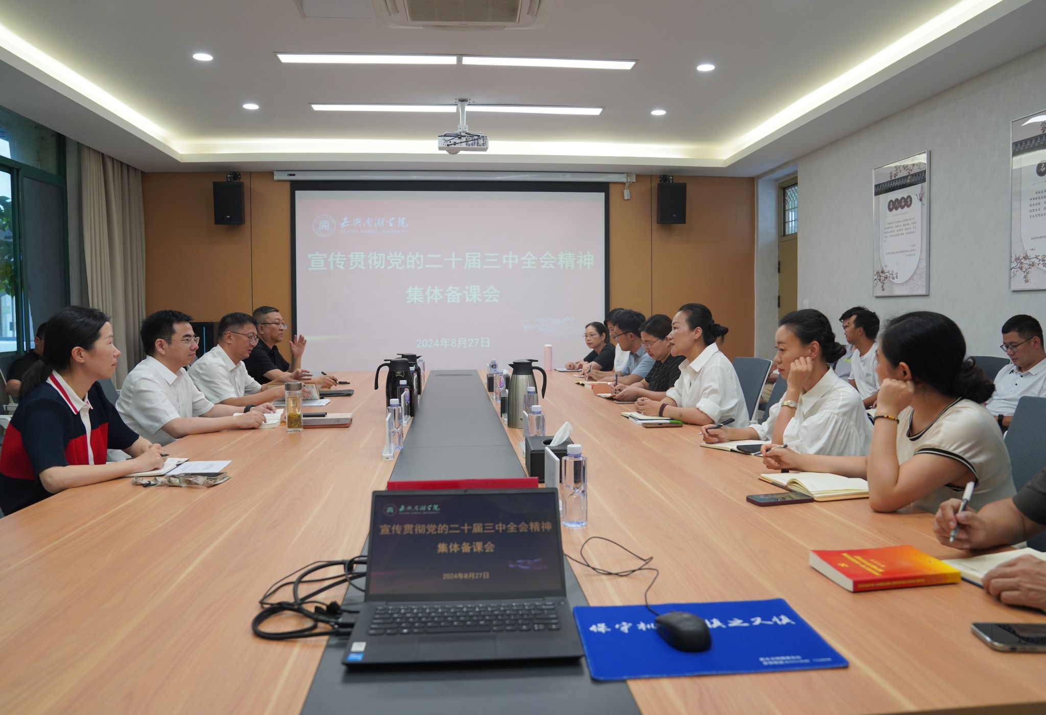 为深入学习宣传贯彻党的二十届三中全会精神,8月27日,我校在马克思主义学院举办学习贯彻党的二十届三中全会精神集体备课会。校党委书记倪沪平,校党委副书记沈岱峰,校党委委员、宣传部部长蒋娟芬,党委宣传部、教务处、马克思主义学院相关负责人及教师代表参加备课会。